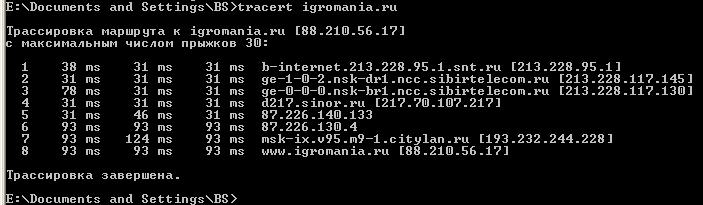 | Тогда надо trace сделать тебе... Это в консоли такая команда есть, trace igromania.ru делаешь и копируешь результат сюда. |