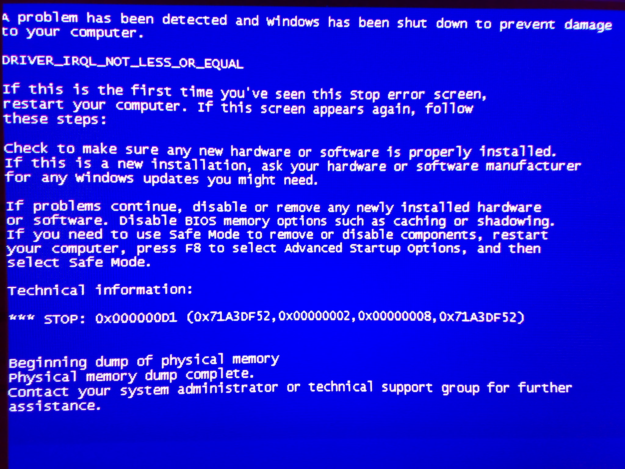 Сижу за компом, и тут возникает синий экран и надпись......Что это такое???????