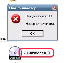 Когда привод пустой иконка показывает DVD-RW дисковод, когда вставляю чистый диск DVDRW и хочу его открыть он показывае следующее см. рисунок: