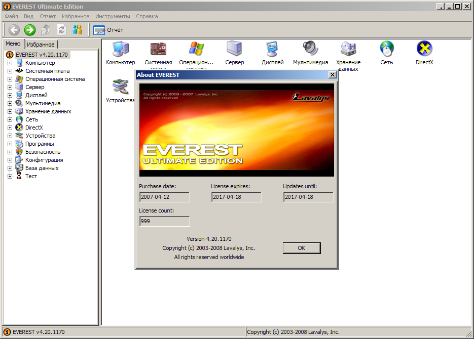 18 октября 2007 года компания Lavalys выпустила новую версию программы для сбора и систематизации системной информации EVEREST Ultimate Edition v4.20.1170.