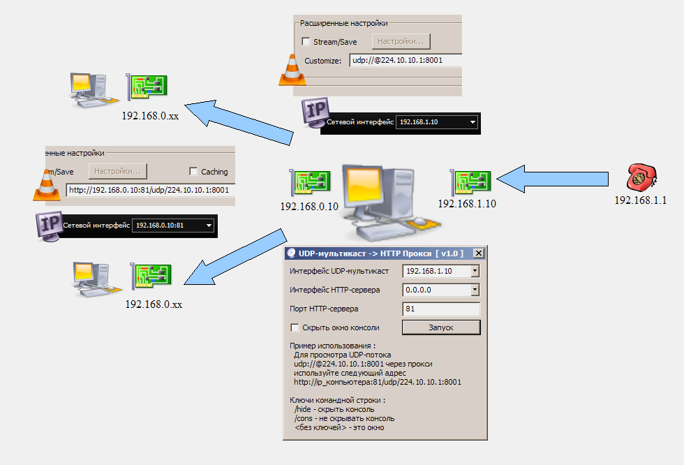 по поводу ретрансляции в локалку смотри udp-to-http proxy