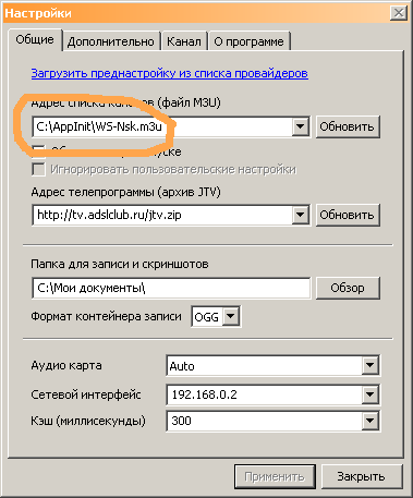 Тогда идём в настройки и смотрим с какого адреса берётся плэй-лист.