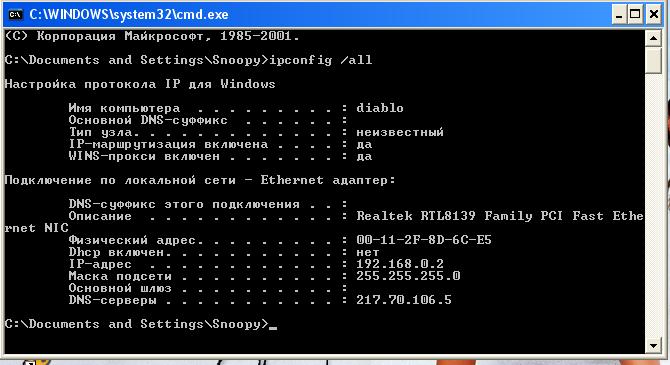 Основной шлюз: 192.168.1.1