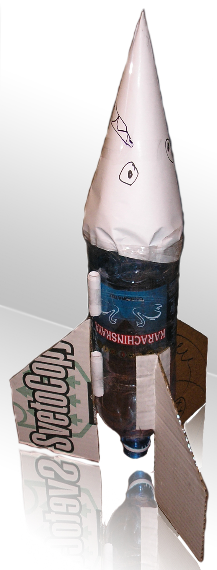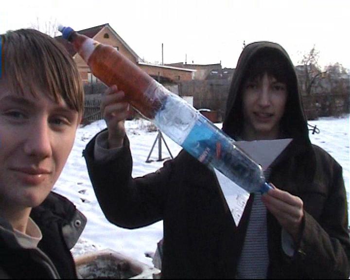 однажды нам с Mad Rabbit'ом было нечего делать, а ещё насмотревшить "The Jackass" и "Мозголомов" мы решили сделать модельку ракеты... из подручных средств. Дело было поздним вечером. Мы взяли пластиковую бутылку, приклеили к ней стабилизаторы из картона и пошли на улицу запускать. Мы нашли у меня электронасос и воткнули его в... сопло ракеты. Вуаля - через несколько секунд она взмыла в воздух. Мы задурялись с ней все выходные, а на следующие сделали ещё одну модель. Отсняли видео и решили поделиться нашим тупизмом с вами)) Зацените!