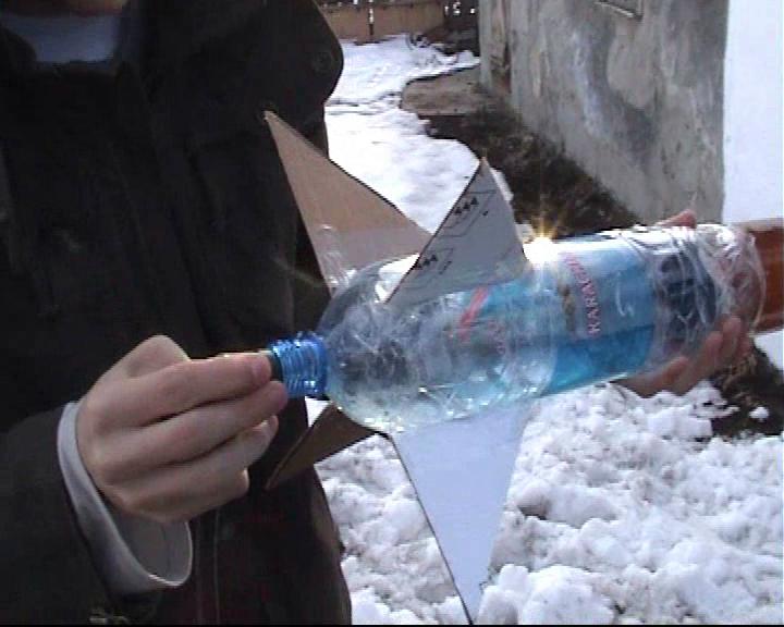А мы раньше так и делали. В бутылку трубочку втыкали, наливали воды чуть-чуть и компрессором или насосом накачивали. Только при старте мы все грязные становились от реактивной струи  |