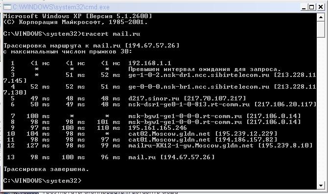 пуск-выполнить-набрать cmd- в появившемся окне yf,hfnm tracert mail.ru