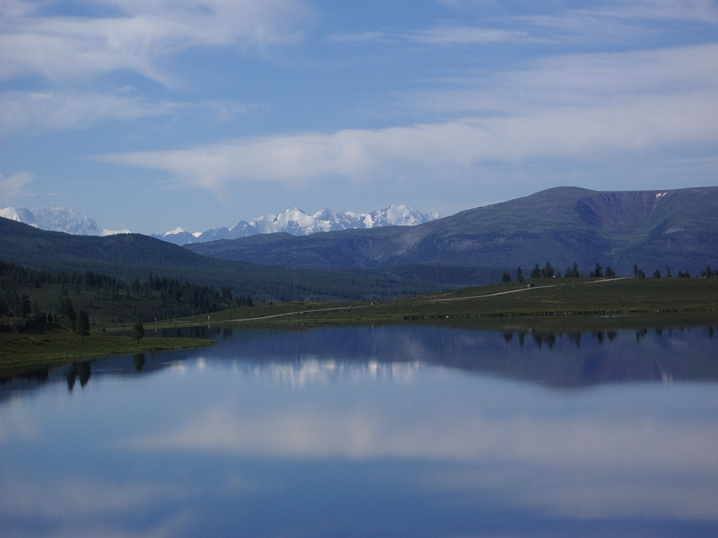 Снежные горные вершины... невероятные ощущения..когда плаваешь в тёплом озере и видишь снежные вершины гор...супер ;) |