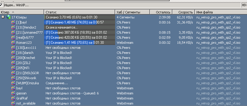 Вот: http://www.adslclub.ru/new/dc . Прочти то, что там красным написано! А у тебя Пирс и Вебстирим вместе грузятся из одного клиента p2p. |
