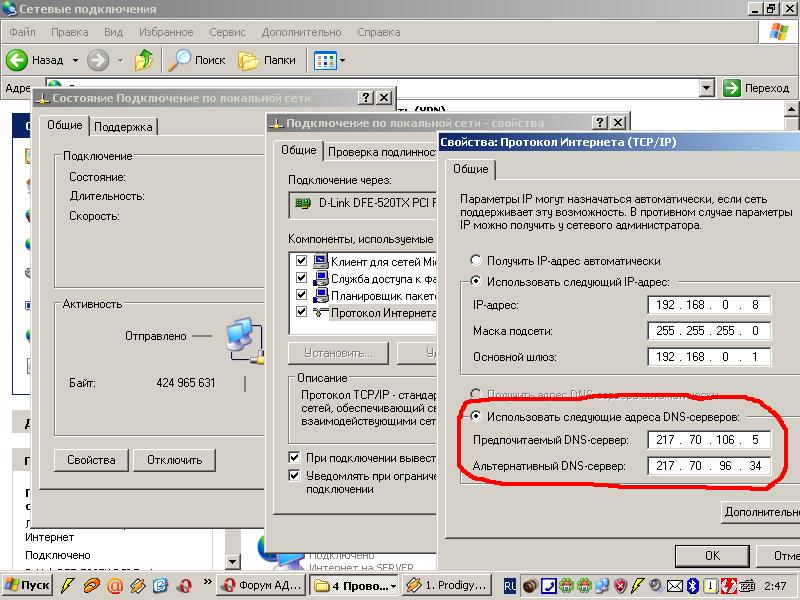 В общем смотри как у меня. Выстави DNS. Остальное не торогай..