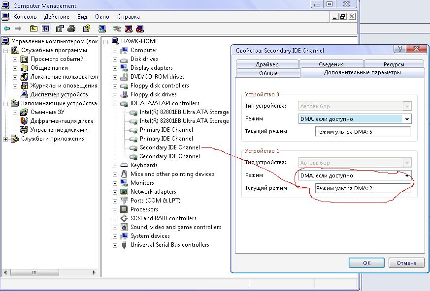 по поводу device manager winkey+r-> compmgmt.msc ->скриншот приложен
