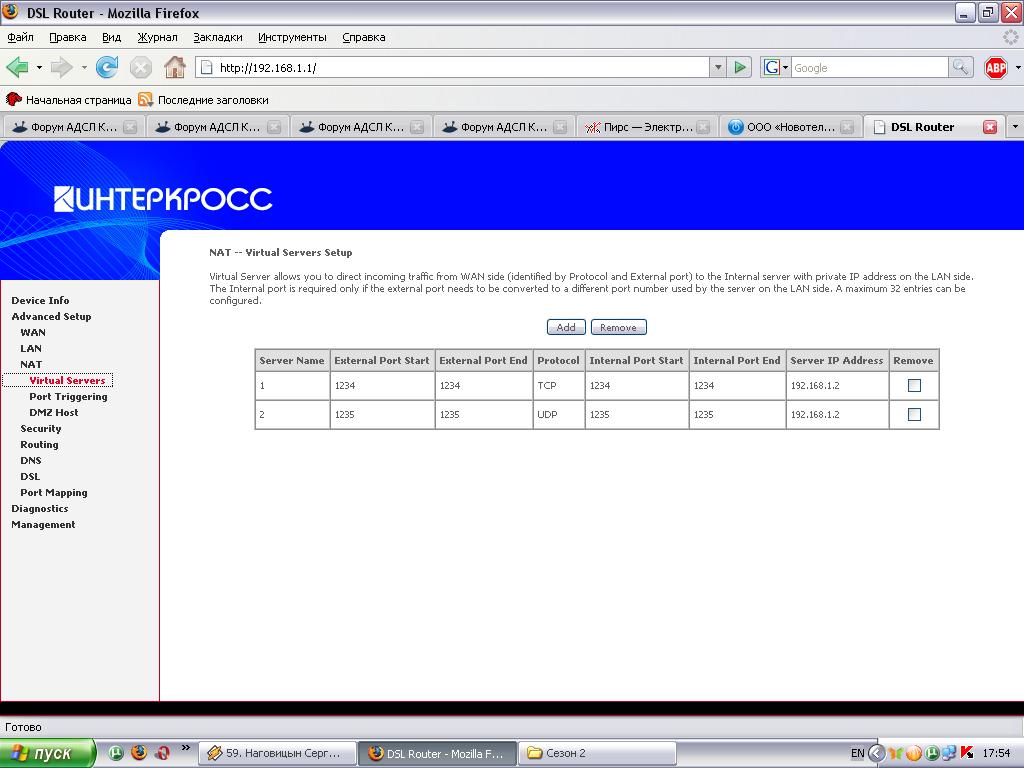 На вс я уже год - разобрался с большинством тонкостей настроек,но одна вещь так и не работает -мапинг портов ,подозрение что я прописываю не всё так как нужно в настройках модема (скрин),модем у меня ICxDSL 5633 NE Annex A с синим корпусом.Кто из разбирающихся в этом граждан знает в чём дело?Очень нужно решить этот головняк не дающий мне покоя