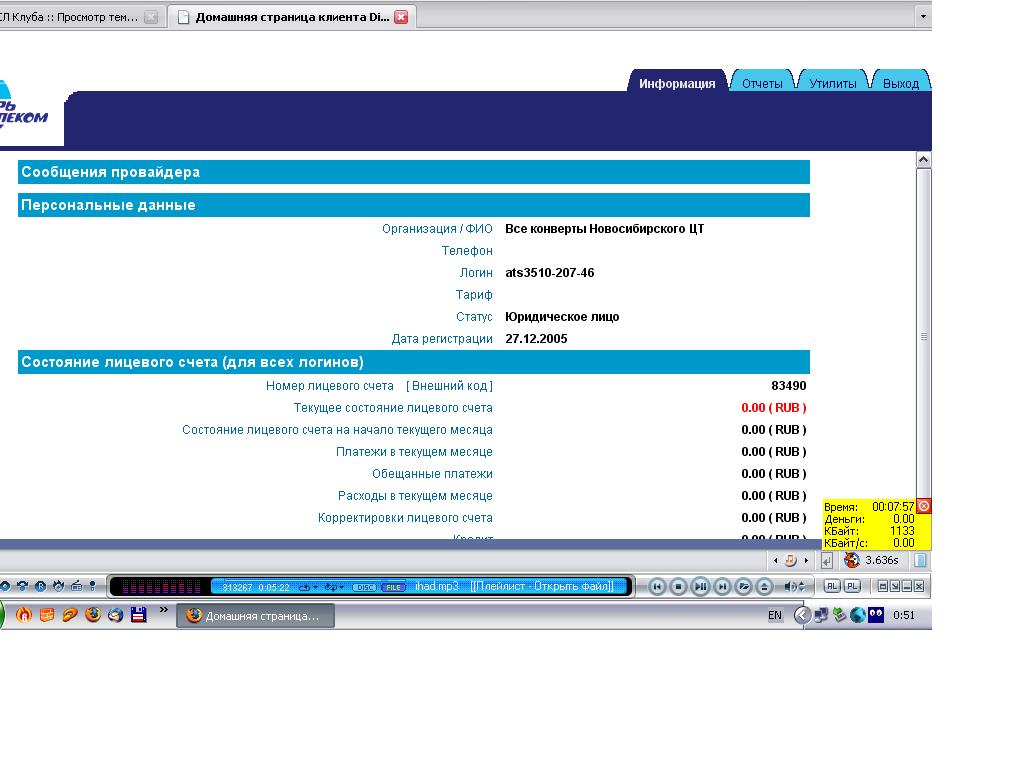Сегодня снова ходил в СЦ там подтвердили сто действительно моего логина нет в статистике и что вообще там нет еще около 700 таких как я , не успевают. сейчас решил проверить свой логин здесь:http://service.sibnet.ru и о чудо: мой логин есть там, но что самое интересное это то что он оформлен не на меня а на какоето Юр.Лицо и зарегистрирован 27.12.2005