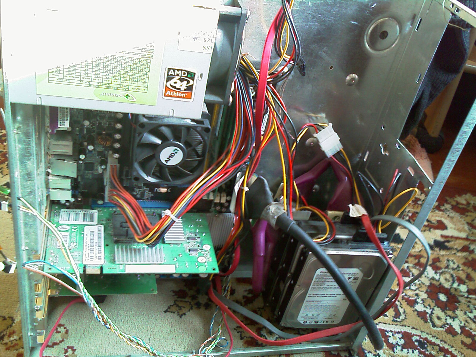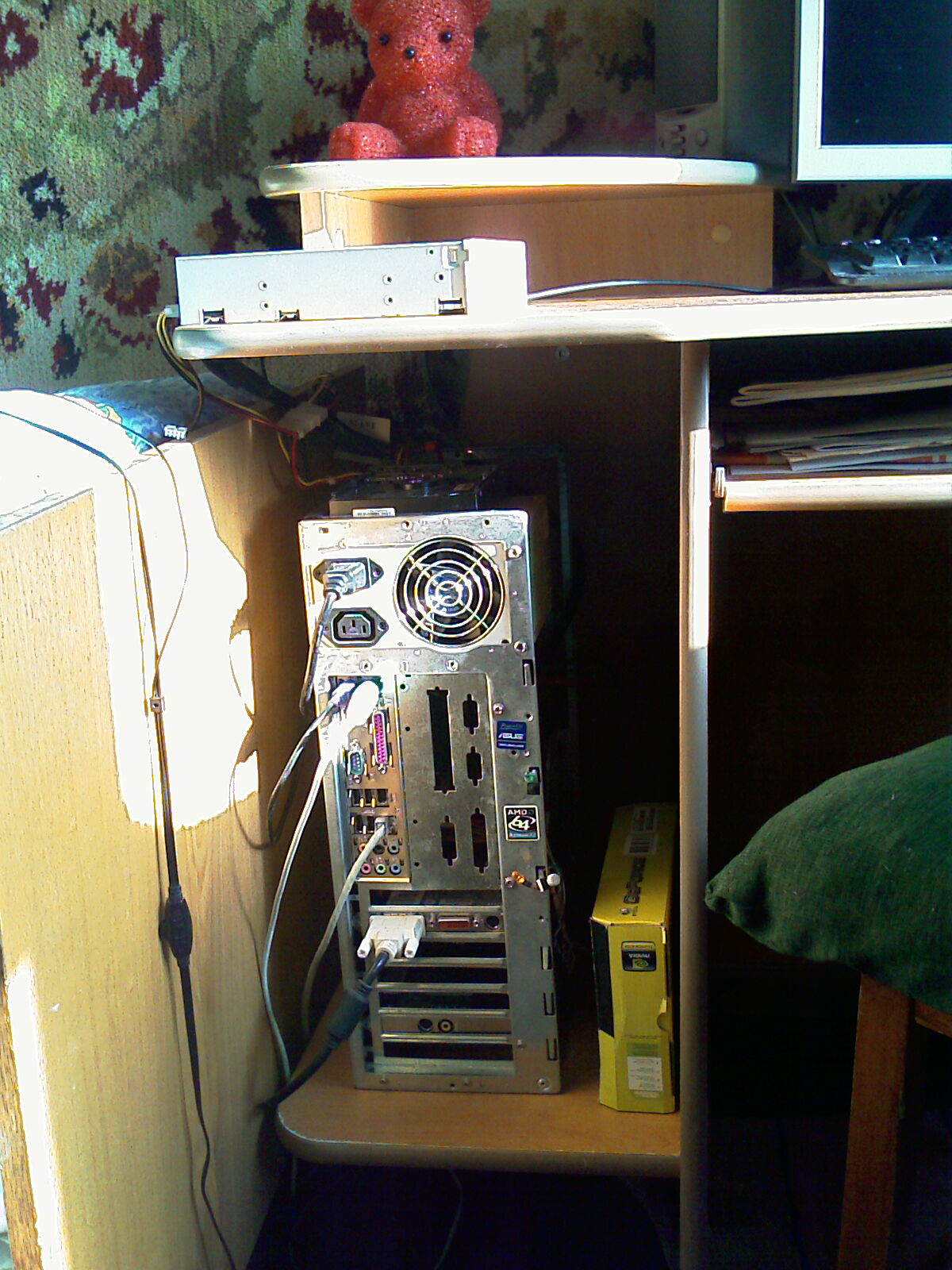 3 Винта прикручены рядом, один лежит иногда рядом с "системником" на коробке из под ВП, 5тый лежит на блоке питания. Сидюк на столе...