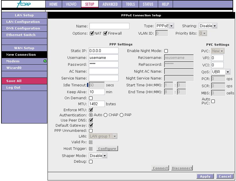 Ну понятно что поля с именем и паролем я заполняю, а вот QoS не трогаю, может там както можно ограничить скорость. У меня безлимит на 128 и мне кажется что модем подключается на большей скорости и на ней пытается жить, а его режкт. Сейчас когда трасеры делал смог на другой сайт выпрыгнуть и по нему ходило без продлем а вот остальные делают попытку открыться ну в браузере пишет что 10 байт получино и встаёт.