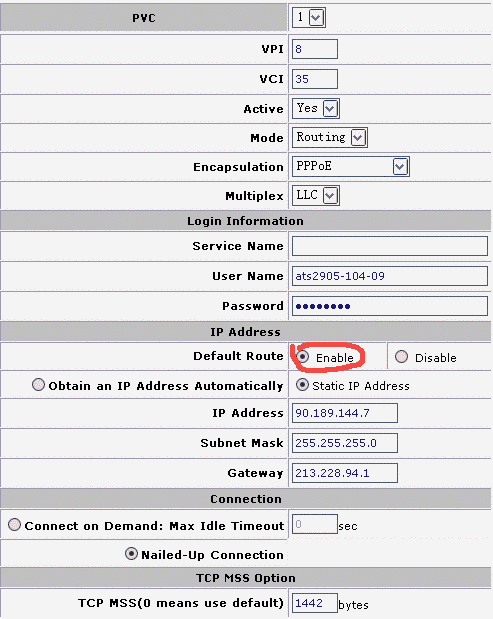тут я не понял - в инструкции (по крайней мере сейчас) именно Default Route - Enable.