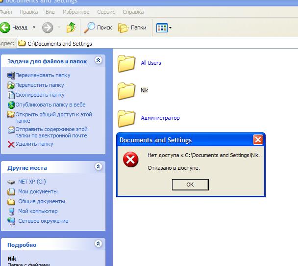 | Cкинь exploper.exe с процессов и жди пока его не запустит system.У тебя будут root'овские привилегии и ты можеш зайти в закрытые папки. |