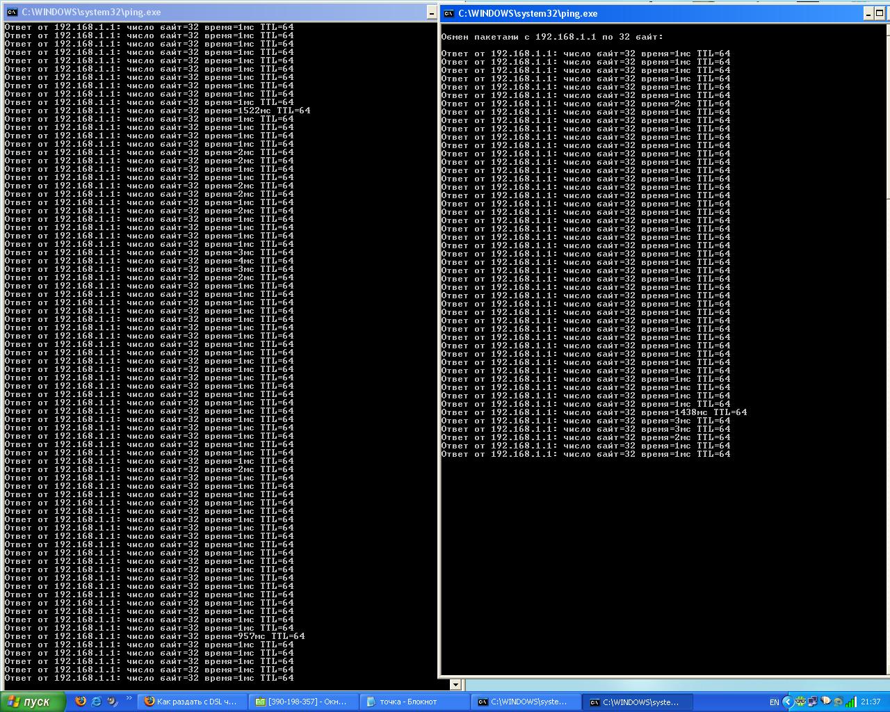 Всем привет! Помогите плиз!!! Короче: у меня в квартире стоит точка доступа dsl 2640U с wi fi ем, комп. в спальне а сам модем в коридоре, юзаю по wi fi инет. Проблема вот в чем когда пингую модем по стандартному ip 192.168.1.1 пинг 1м/с., но потом через около 63 запросов пинг около 2000м/с. А потом опять 1м/с. И так постоянно примерно через ~63 запроса 2000м/с.Помогите плиз!