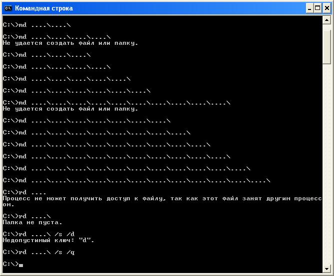 Вывод, если хочешь избавиться от этой папки, перемести все, что есть на этом диске куда-нибудь и отформатируй его. Вот если бы точки были в конце имени папки, тогда никаких проблем, а тут особый случай, относящийся к играм с ФС. |