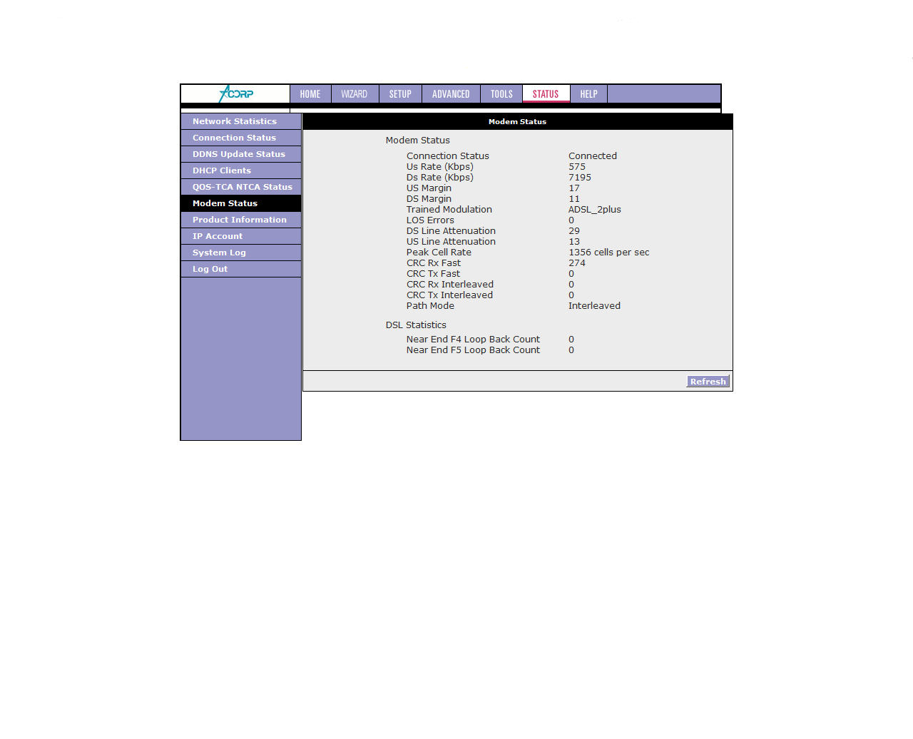 (1) ADSL Router Status