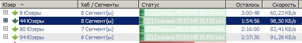 очередь скачивания-> по файлу правой мышью,макс число сегментов |