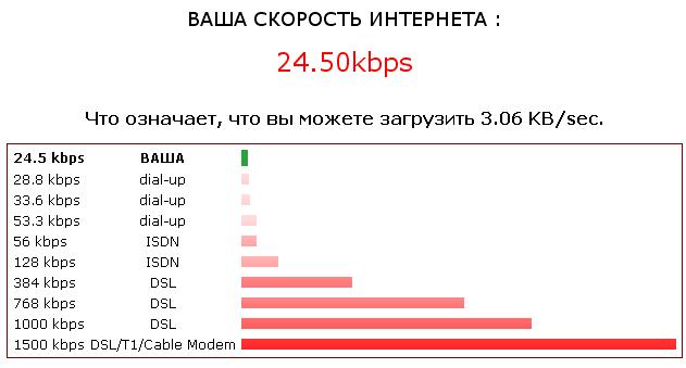 Скорость вашего канала: 39.41 Kbps ( 40356 bps)