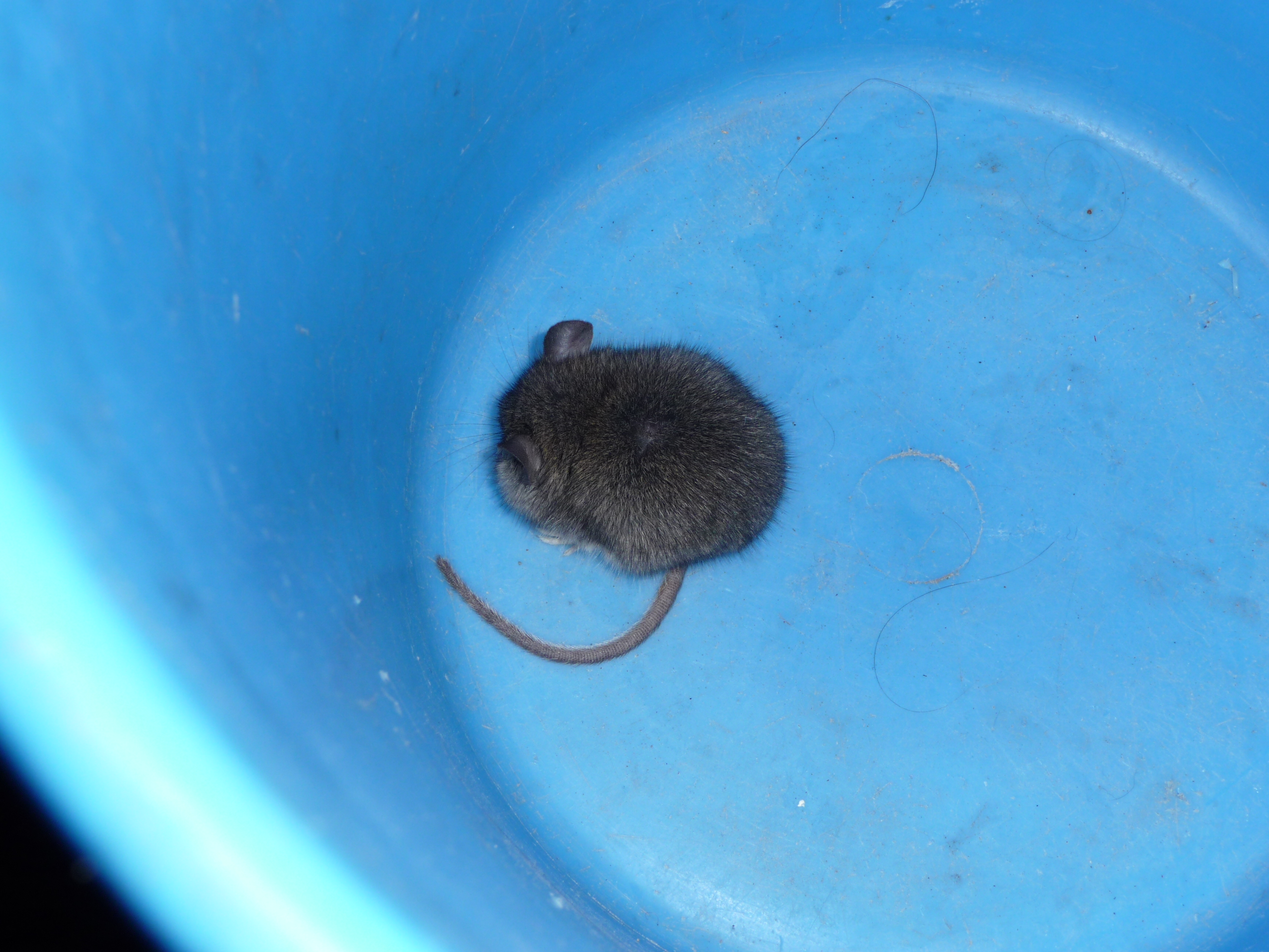 Вот такого зверя я сегодня обнаружил посреди комнаты... Это мышёнок, обожравшийся шоппц. Ходит с трудом, походу имеет флюс. Меня не боялся вообще, когда я подходил, то пытался меня обнюхать. Когда его легонько тыкал карандашём, то тот забавно перекувыркивался через спину... Забавное существо. Сейчас сидит в ведре и ждёт, когда я отнесу его на помойку.