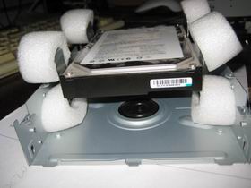В общем смотри, должно получится после прокладывания резины и прочего что корпус ХДД и всё крепёжное замутство не контактирует с корзиной напрямую а только через резину(а то некоторые положат прокладку и прикрутят болтами, через болты от диска к корзине вибрации продолжают идти).