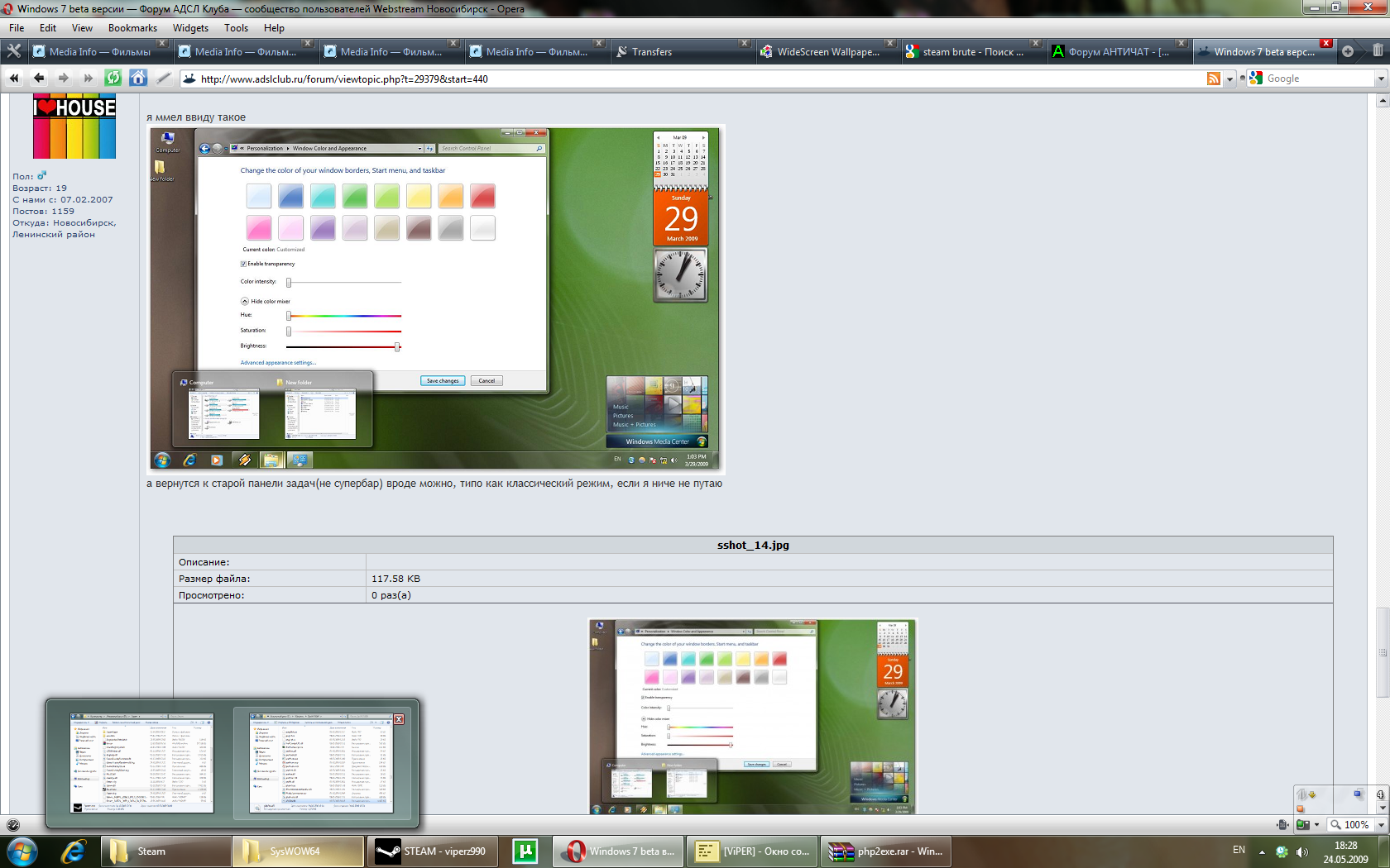 ViPER я смотрю ты отказался от новой панели задач, вернулся к старой, че неудобно что ли? ну когда только значки и по правой клавише выскакивает список