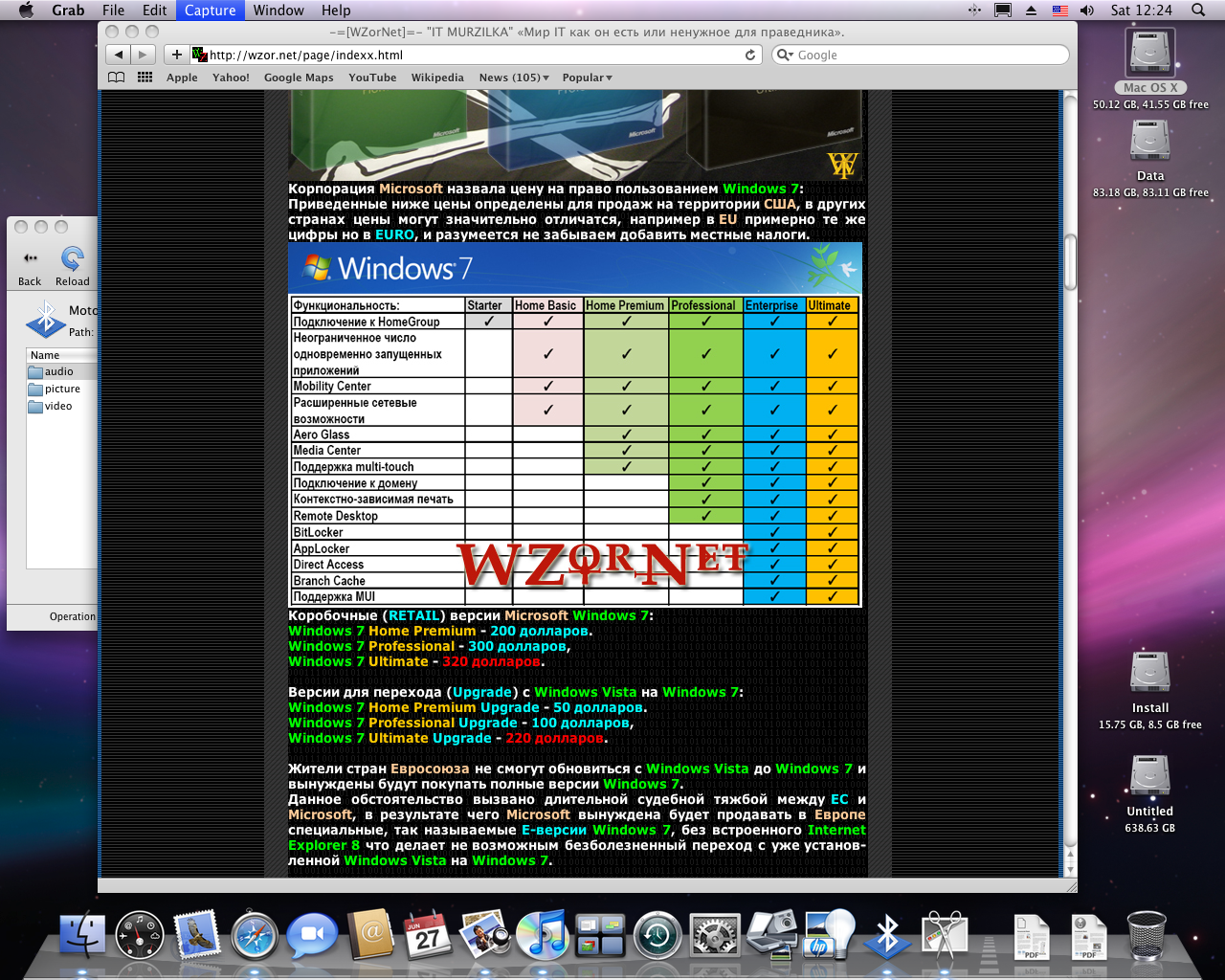 | MAXXX Именно - есть резон только из-за оперативки. 64битного софта все еще слишком мало, эт вам не линукс, где все можно сразу перекомпилировать. Так и под линуксом, кстати, никто особого прироста от х64 не наблюдает (за исключением специально адаптированного софта, коего - крайне мало, как и на винде). |