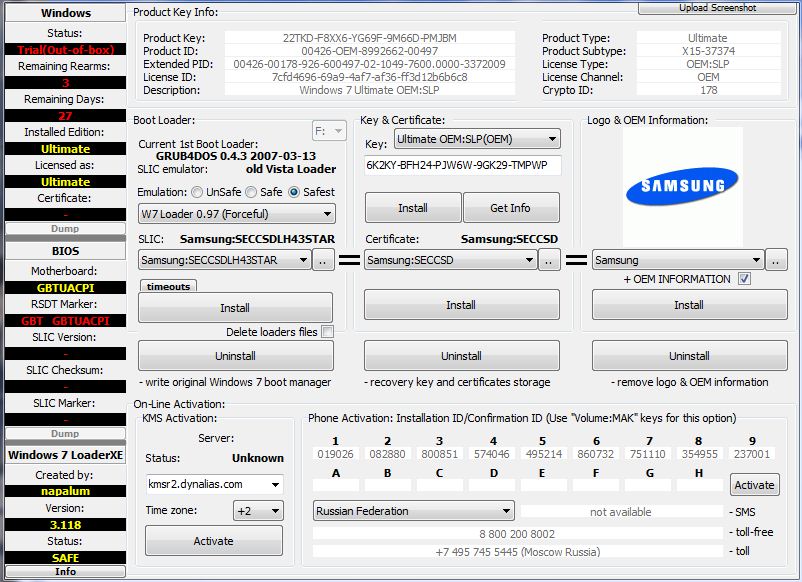 прошил биос матери giga p55ud3 для активации виндовс 7.при запуске slmgr -ilc C:\GIGABYTE-GBT-2.1.XRM-MS и slmgr -ipk 22TKD-F8XX6-YG69F-9M66D-PMJBM пишет мол винда активирована,а при просмотре 30 дней(уже 26)