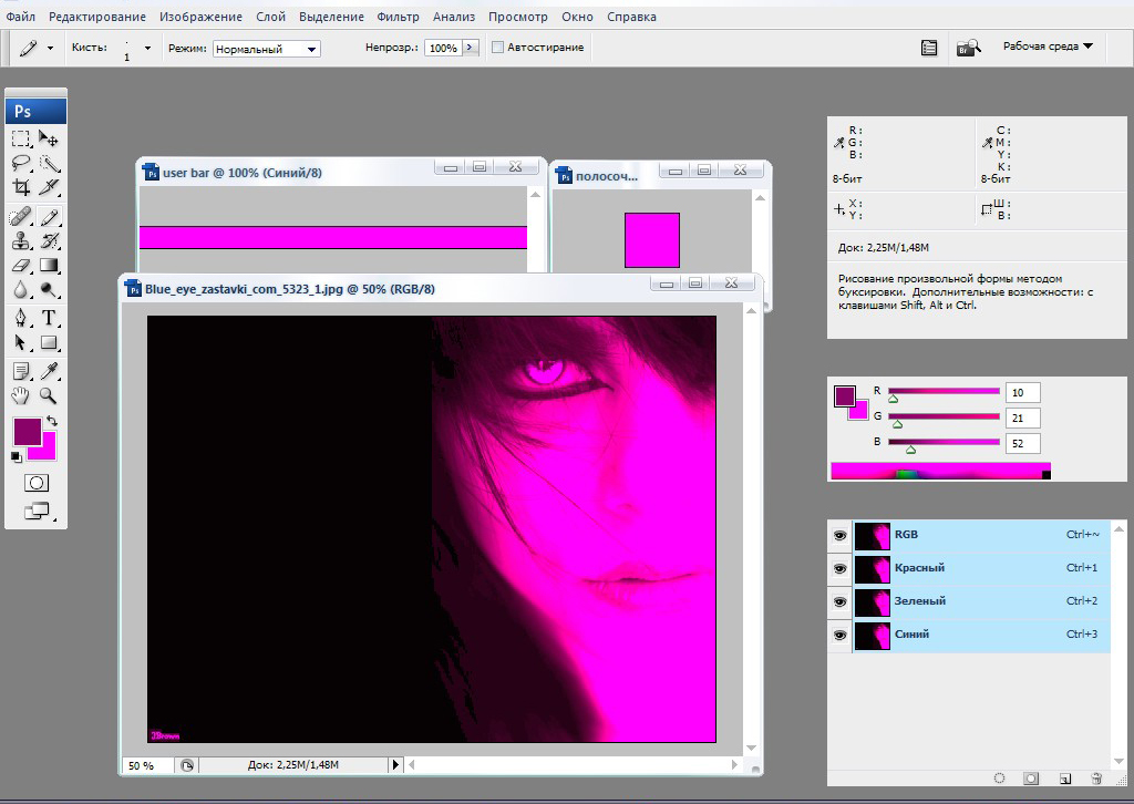 Пытаюсь освоить фотошоп, не могу понять, почему всё в розовое.