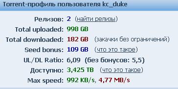 | при этом сижу только на торентс.ру и хватает держать ратио >2 |