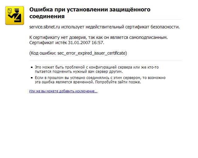 Заголовок сообщения: https://service.sibnet.ru/ тухлый сертификат