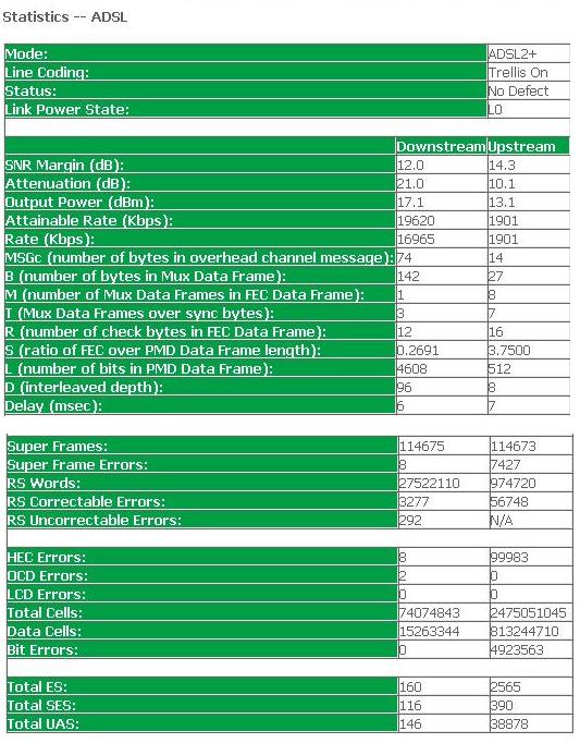 По скрину- модем греется- очень много HEC-ошибок по исходящему каналу. Т.е., нагрузка на чип модема, соответственно, увеличенный нагрев. Не нравится мне этот самый профиль с ограничением в 1901 по исходящему каналу, желательно подобрать профиль с несколько другими параметрами и убрать скрутки.