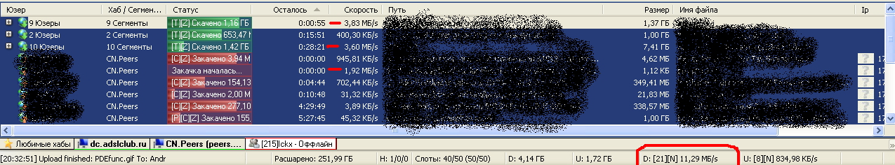 сори за качество клиента п2п,там суммарная скорость чуть тормозит,поэтому она не соответствует тому значению если сложить те что на скрине скорости