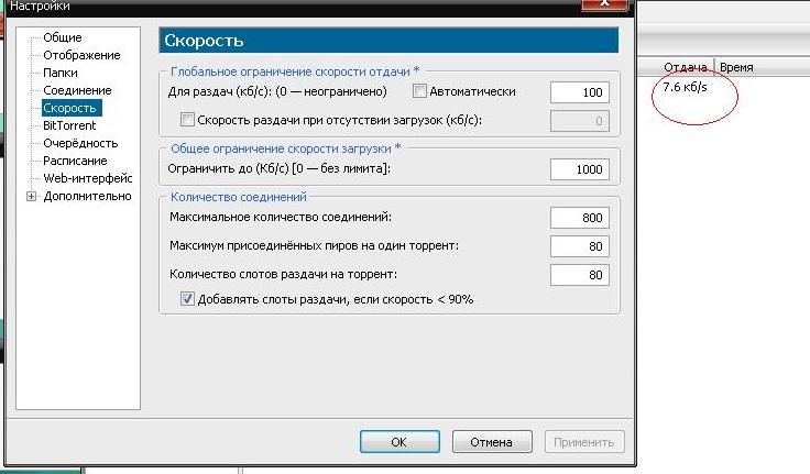 Спс, помогло. Поставил на раздачу Лост, Хауса - уже 80 кБ отдача, почти забил канал). |