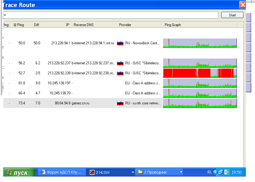 Ну вот. У тебя просто проблеммы с каналом. А точнее полная Ж на 4-ом хопе. Звони провайдеру и спрашивай  |