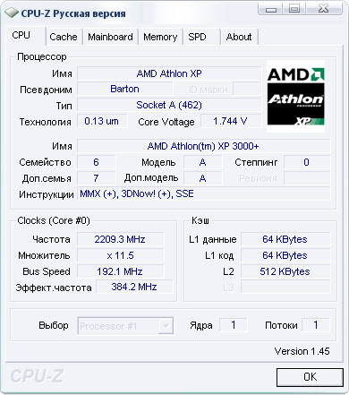 | Не хочу качать CPU-Z так скажу. Свой АМД 64 3000+ разогнал макс с 1,8ггц по 2.6. Стабильный разгон до 2.5 |