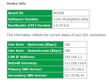 | Параметры линии смотрятся тамже в админке модема, ищите чтото вроде Statistic - DSL, если не можете понять чтто это то можно посмотреть и здесь: http://help.es-nso.ru/ = сначала создаёте аакаунт (произвольные логин/пароль) затем услугу вебстрим(логин/пароль именно из рег. листа) затем перс. информация-узнать параметры соединения и сюда. |