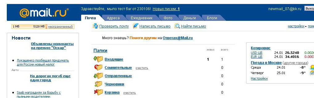 ну я маялся все время... когда мне музыку отсылали... когда перегруз мыла был, то письма не доходили... к примеру ложусь я спать, а мне ночь кто то мыло забил новым альбомом до отказа и все что пришло за ночь потерялось... именно поэтому я и сделал себе по гектару 3 мыла... ) |