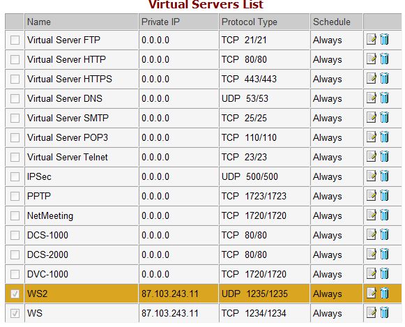 в Virtual Servers в Private IP нужно писать 192.168.1.2 или какой там у тебя внутренний ип