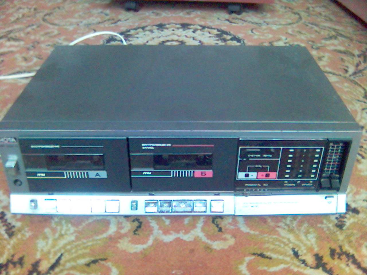 для того чтобы включить усилитель - надо вставить в деку "Б" кассету и нажать на кнопку "запись" - кассета не будет крутиться. просто усел включится. |