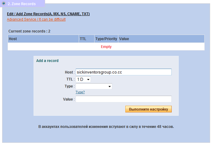 Помогите пожалуйста победить такую вот заразу. допусти в предыдущем окне, в настройках домена надо было указать днс хостинга (я крайне далёк от этих дел=)). В следующем окне какие то совсем уж непонятные параметры =) Скрин прилагаю, скажите что это за звери такие?