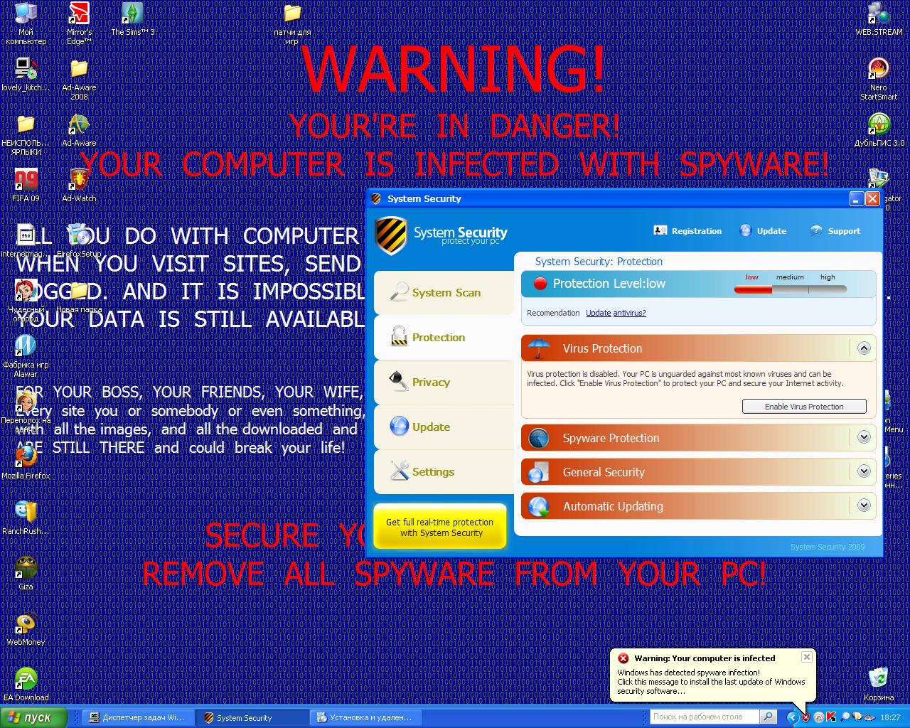 Но на днях приехал к клиенту, он сказал что у него на компе установлен лицензионный Каспер, и однажды откуда то появилась эта Систем Секьюрити, которая сразу стала орать об куче виурсов и выводила на рабочий стол предупреждения вместо обоев..
