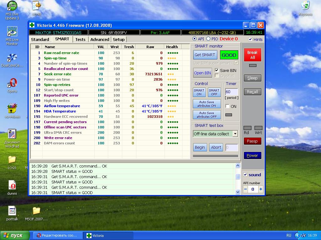 В последнее время стали возникать проблемы hdd maxtor 250gb, постоянно вылетают ошибки crc. Вот смарт, скажите норм или нет.