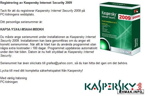 Промоакция от Лаборатории Касперского. На шведском сайте можно бесплатно получить ключ для Kaspersky Internet Security 2009 (2010)