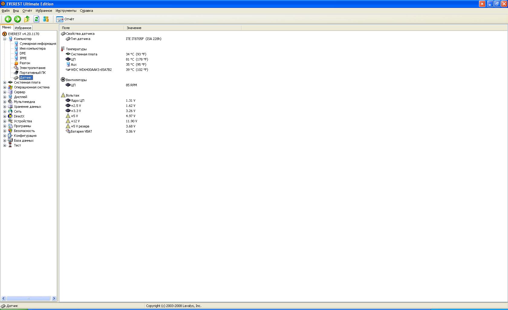 ну скачай Еверест, и сделай скрин, там все температуры! |