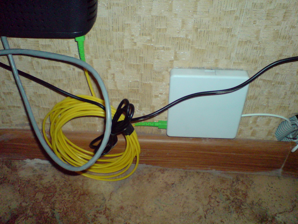 Сам модем, и кабель от него пошёл в комнату |