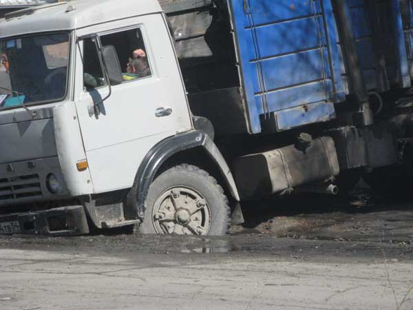 попали сами коммунальщики. (земля просела под асфальтом и весной ее залило водой).