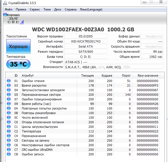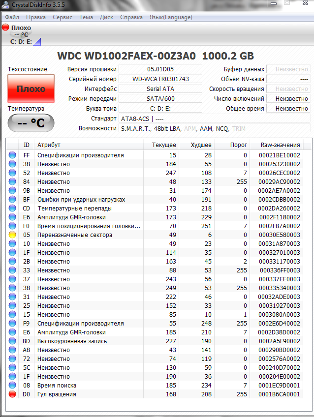виктория при старте выдает кучу ошибок и не показывает смарт вообще, пишет BAD